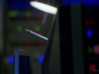 Sam Weiss throws a pen to the Wave Sink Device, which bounces back and hit the computer monitor. Pen seems to be a recurring item in the show.